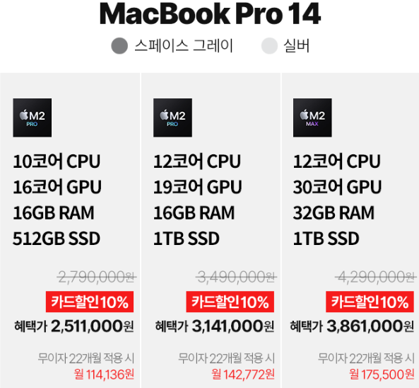 새로운 맥북 프로 M2 Pro / Max 14인치 & 16인치 가격
