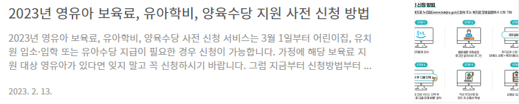 2023년 영유아 보육료, 유아학비, 양육수당 지원 사전 신청 방법 (0) | 2023.02.13 |