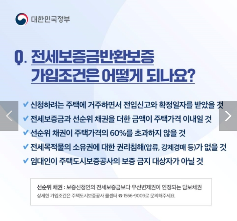 한마디로 전세계약 종료 후 임대인이 자의나 타의로 전세보증금을 돌려주지 않을 경우 주택도시보증공사가 대신 세입자에게 전세보증금을 돌려주는 제도를 뜻합니다.