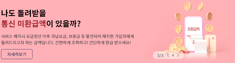 주위를 살펴보면 알게 모르게 눈 먼 돈이 많다는 걸 깨닫게 되는데요. 통신비도 그 중 하나입니다. 고객에게 돌려줘야 할 환급금이 반환되지 않고 쌓여 있는 경우가 의외로 많은데요. 당연히 돌려받아야 하는 돈이지만 조회 및 환급 방법을 몰라 그냥 넘어가는 경우가 많습니다. 그래서 준비한 통신비 미환급금 조회 방법, 어쩌면 여러분의 소중한 돈이 잠들어 있을수도 있으니 꼭 확인해 보시기 바랍니다.