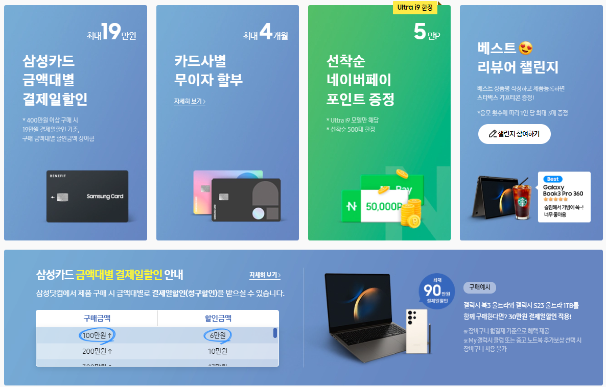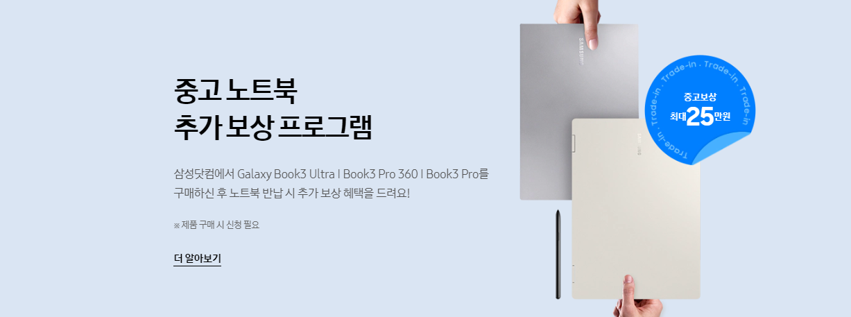 참고로 삼성 공홈에서 다양한 구매혜택은 물론 중고 노트북 추가 보상 프로그램도 진행하고 있으니 구입 비용은 낮추고, 혜택은 더 많이 챙기고 싶다면 한 번 살펴보기 바란다.