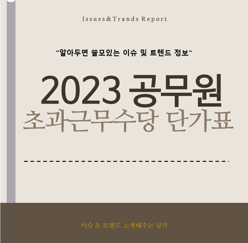 2023년 공무원 임금인상률이 1.7%로 결정되었습니다. 하지만 물가 상승률과 다른 직종의 임금상승률을 비교하면 상당히 낮은 상승률이라고 생각되는데요. 이로 인해 많은 공무원들이 초과 근무 수당과 같은 추가 보상에 대해 궁금해하는데요. 오늘은 2023년 공무원 초과근무수당 단가표를 정리해 봤습니다.
