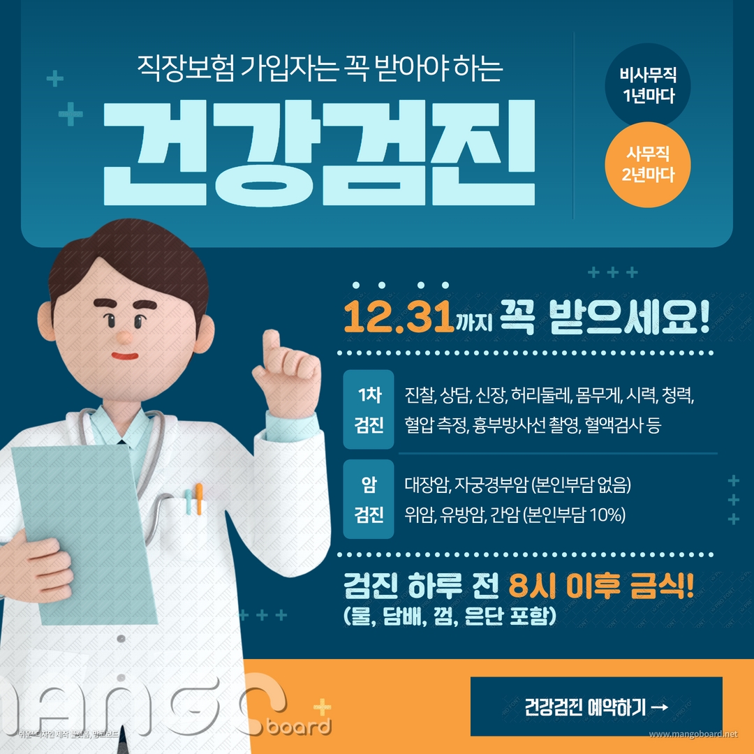 나를 위해서, 그리고 가족을 위해서 건강검진은 빼먹지 말고 꼭 챙겨야 하는 중요한 이벤트 중 하나입니다. 혹시나 암과 같은 큰 병에 걸릴 경우 가족의 일상이 무너지는 상황이 발생할 수 있기 때문인데요.