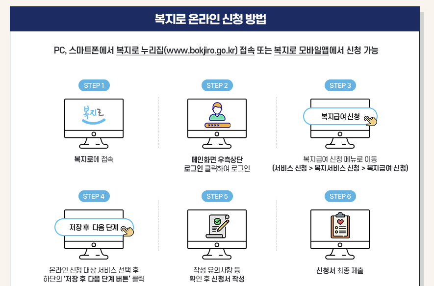 - 복지로 웹사이트 또는 모바일 앱을 통해 간편하게 신청할 수 있습니다.