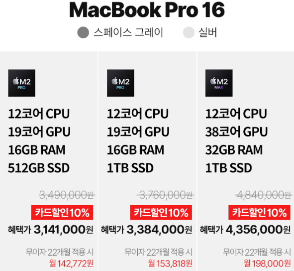 특히 쿠팡 같은 오픈마켓을 이용할 경우 카드 할인 + 무이자 할부 콤보를 통해 초기 비용 부담을 확 줄이며 구입 가능하기 때문에 남들보다 저렴하게 애플 맥북 프로 M2 Pro / Max 모델을 구매하고 싶다면 오픈마켓을 살포시 권해드립니다.